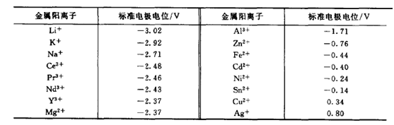 圖1 常見金屬陽離子的標椎電極電位