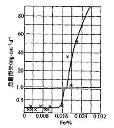 圖2 Fe含量對Mg耐蝕性的影響