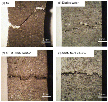 圖3 不同環(huán)境下鎂合金的應力腐蝕開裂形貌