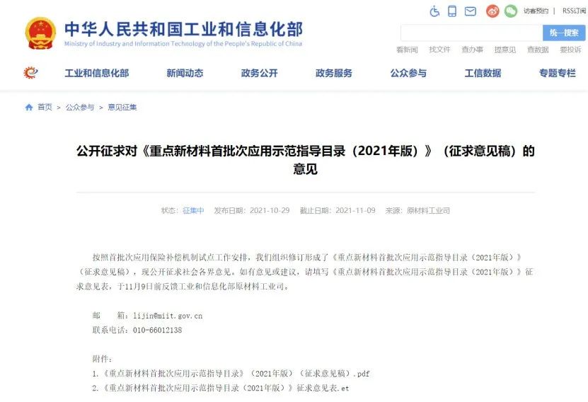 公開征求對(duì)《重點(diǎn)新材料首批次應(yīng)用示范指導(dǎo)目錄(2021年版)》(征求意見稿)的意見